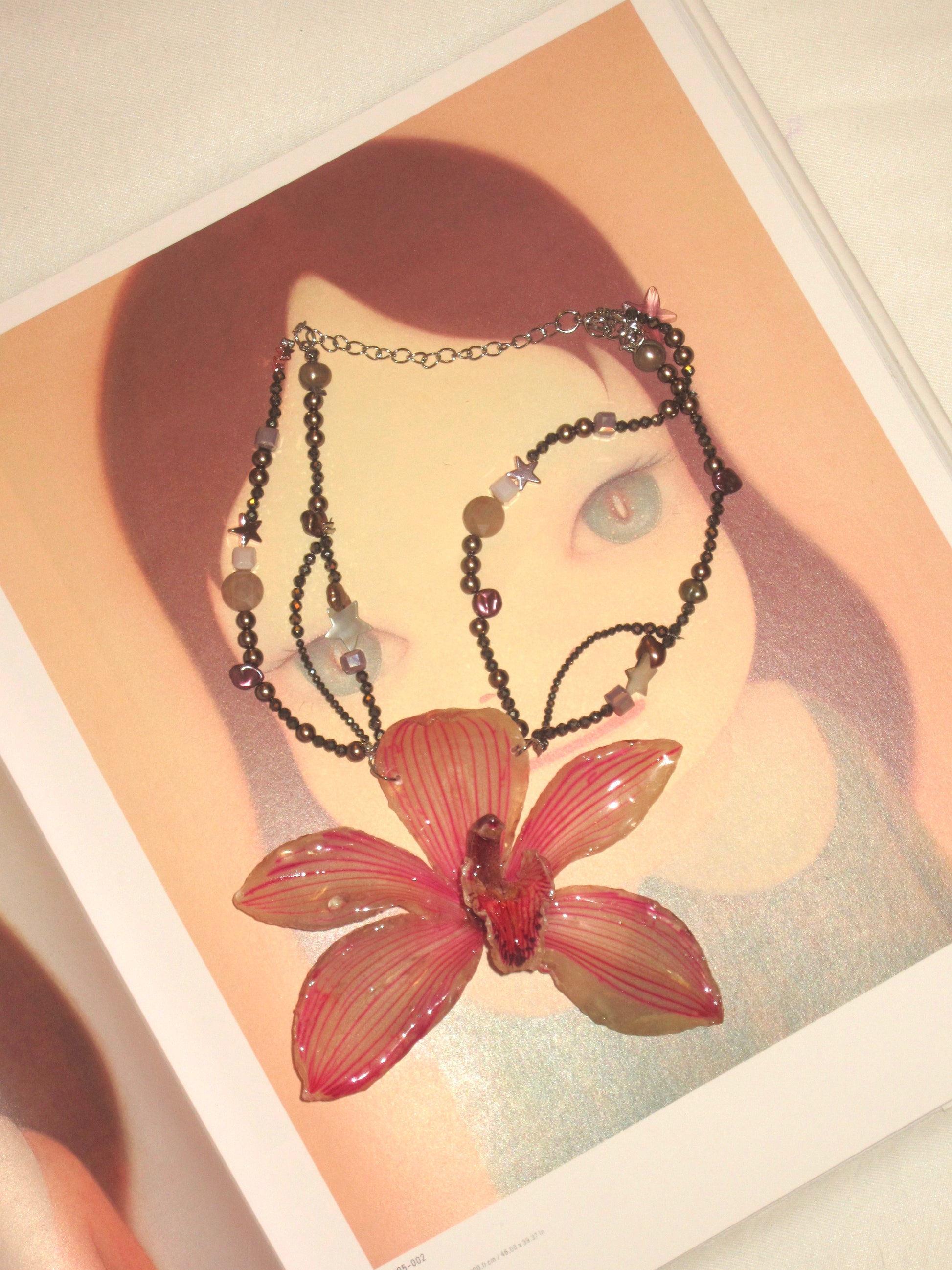 “Plum dew” real flower necklace